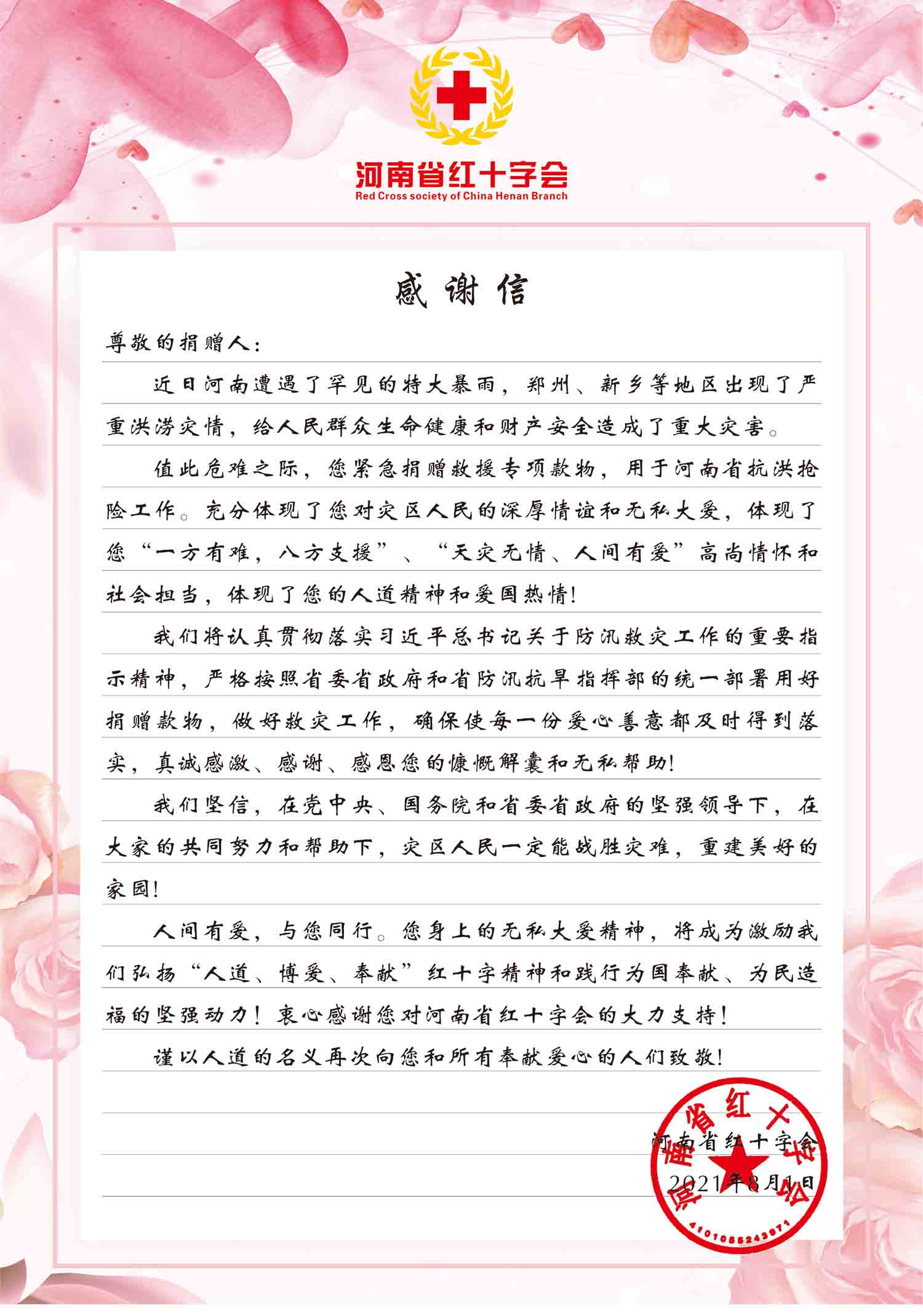 一方有難八方支援,河南特大水災(zāi)牽動(dòng)全國(guó)人民的心。鼎尚(珠海)科技發(fā)展有限公司盡綿薄之力,向河南省紅十字會(huì)捐款10萬(wàn)元人民幣,支援河南防汛救災(zāi)工作。